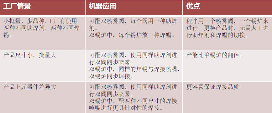 選擇性波峰焊相比普通波峰焊還具有占地面積小、節(jié)省助焊劑、節(jié)約生產(chǎn)成本(治具少、氮?dú)馐褂蒙伲?、啟動功率低等特點(diǎn)。