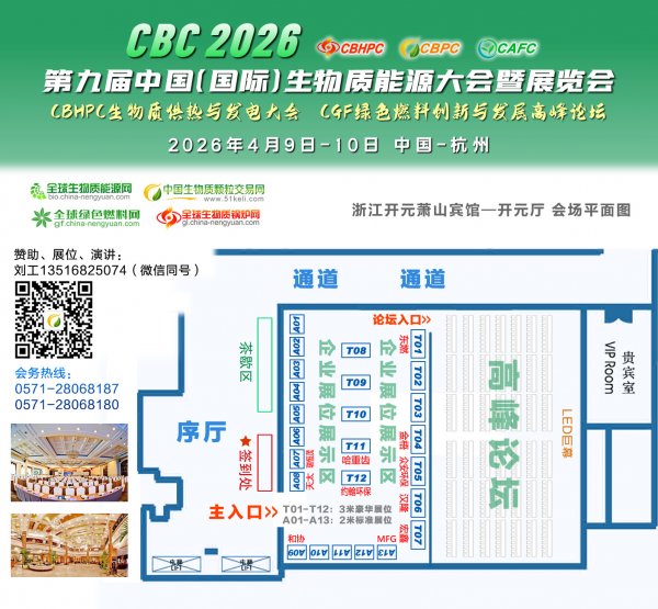 由新能源網(wǎng)(china-nengyuan.com)、全球生物質(zhì)能源網(wǎng)(bio.china-nengyuan.com)、51生物質(zhì)顆粒交易網(wǎng)(51keli.com)齊聚旗下各平臺及業(yè)內(nèi)同仁共同聯(lián)合發(fā)起的《CBC 2026第九屆中國(國際)生物質(zhì)能大會暨展覽會》4月9-10日將在浙江杭州蕭山開元賓館隆重舉行。